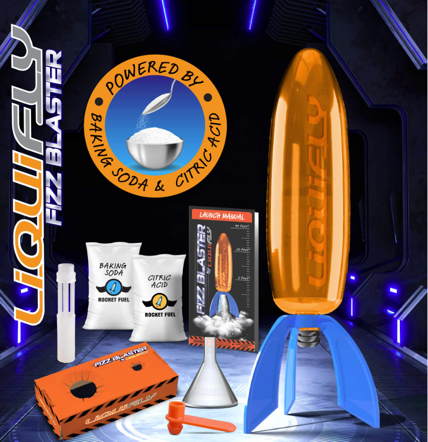 The Liquifly Fizz Blaster is not your ordinary rocket, oh no! It is powered by the fizzy reaction of bicarbonate of soda and vinegar, creating a fantastic blast of frothy propulsion that will send your rocket soaring through the sky. Your little adventurer will be captivated as they witness the incredible power of chemical reactions right before their eyes! But the excitement doesn't stop there - with the Liquifly Fizz Blaster, your child becomes the ultimate rocketeer. They can mix their own concoction using safe and easy-to-find household ingredients and watch as it propels their rocket into the stratosphere (or maybe just the backyard). This interactive approach not only entertains but also educates, teaching kids about science and chemistry in a riveting and hands-on way. With its sturdy and durable design, the Liquifly Fizz Blaster ensures hours of high-flying, heart-pounding fun. Whether it's a solo mission or an epic rocket race with friends, this toy guarantees endless entertainment and excitement for your little ones. Not only is the Liquifly Fizz Blaster a fantastic playtime companion, but it also encourages your child's imagination and creativity. They can decorate and customize their rocket to create a unique and personalized spacecraft that truly reflects their personality. The sky's the limit when it comes to their dreams and aspirations! So, get ready for takeoff and let your child's imagination soar with the amazing Liquifly Fizz Blaster. With its thrilling bi carb power and endless possibilities, this rocket toy is sure to ignite a passion for science and adventure in every young explorer. Hurry and grab yours today, and watch your child's eyes light up with wonder and excitement!