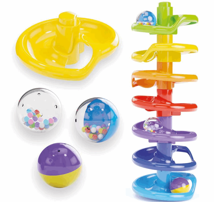 Spiral Tower allows you to build towers from which to launch marbles with dreams that sound during the descent. Large marbles are safe and easy to grasp.