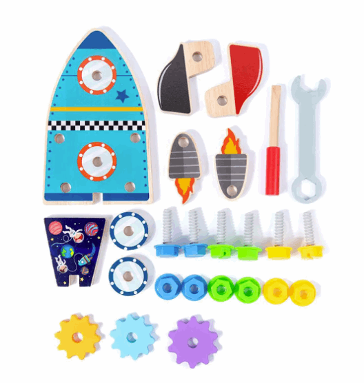 Boost your child's fine motor skills and imagination with this dynamic Rocket Construction Board Set! Your little one can use the included tools, nuts and bolts to build their very own rocket. Blast off into endless hours of fun!