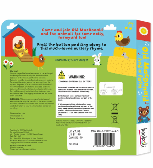Enjoy all your favourite songs and nursery rhymes together! Little ones will love pressing the noisy sound button and joining in with each classic song in this range of sing-along song books. With a fun melody and bright, colourful illustrations, each book is perfect for curious babies and toddlers. Sing along together and do the actions too!