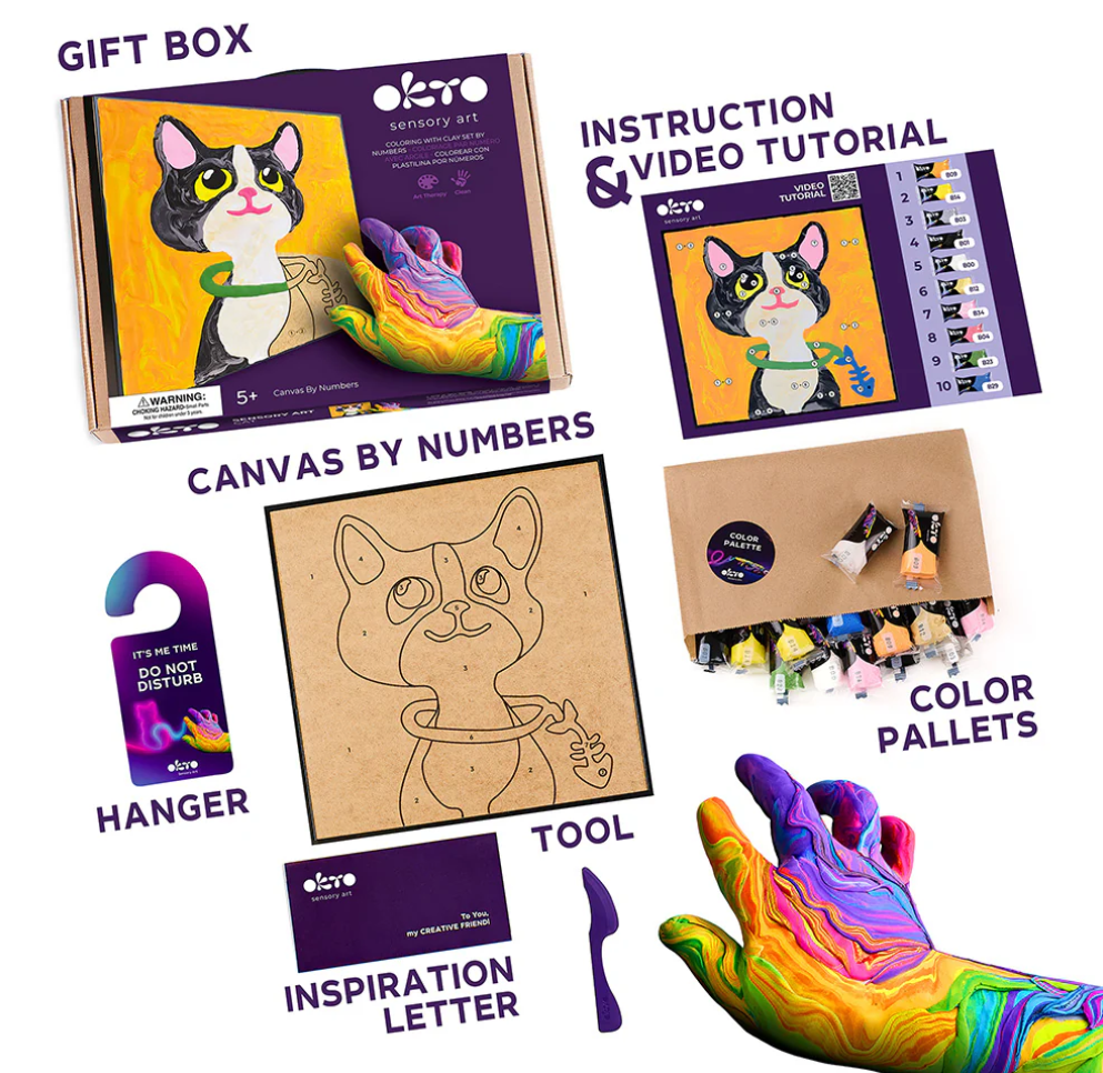 Calling all cat lovers! The OKTO Sensory Art Creative Set: Cat is the purr-fect way for kids to express their creativity while enjoying a fun, hands-on activity.
