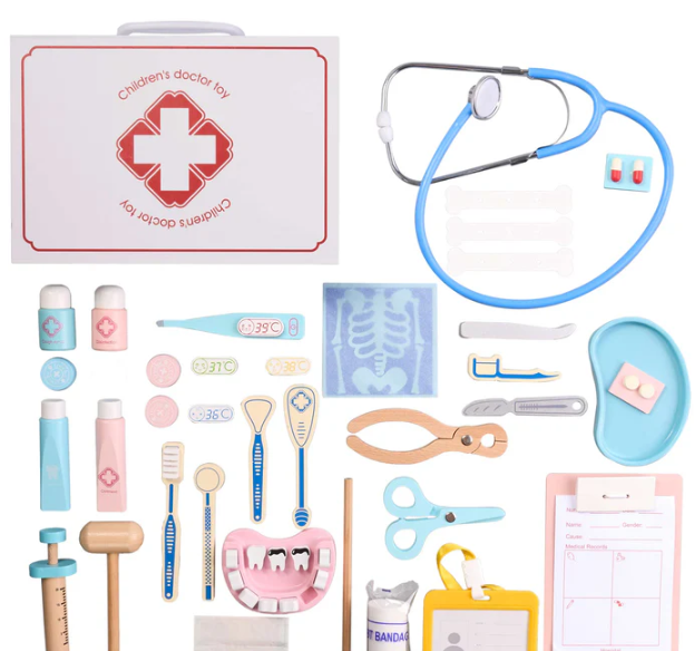 Made from high quality wooden material, this kit inspires creative thinking and prepares children for real doctor's appointments.