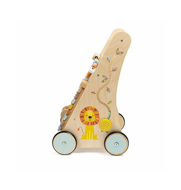 This beautifully designed wooden safari-themed walker is more than just a first-steps companion – it’s a complete activity centre on wheels! Perfect for toddlers learning to walk, it encourages balance, coordination, and independence while offering plenty of engaging activities to explore along the way.