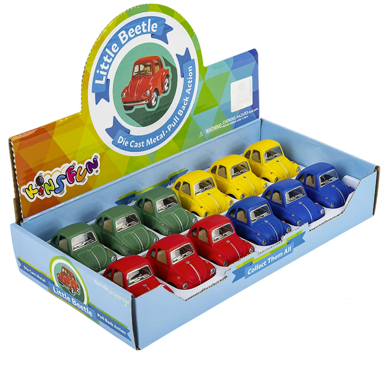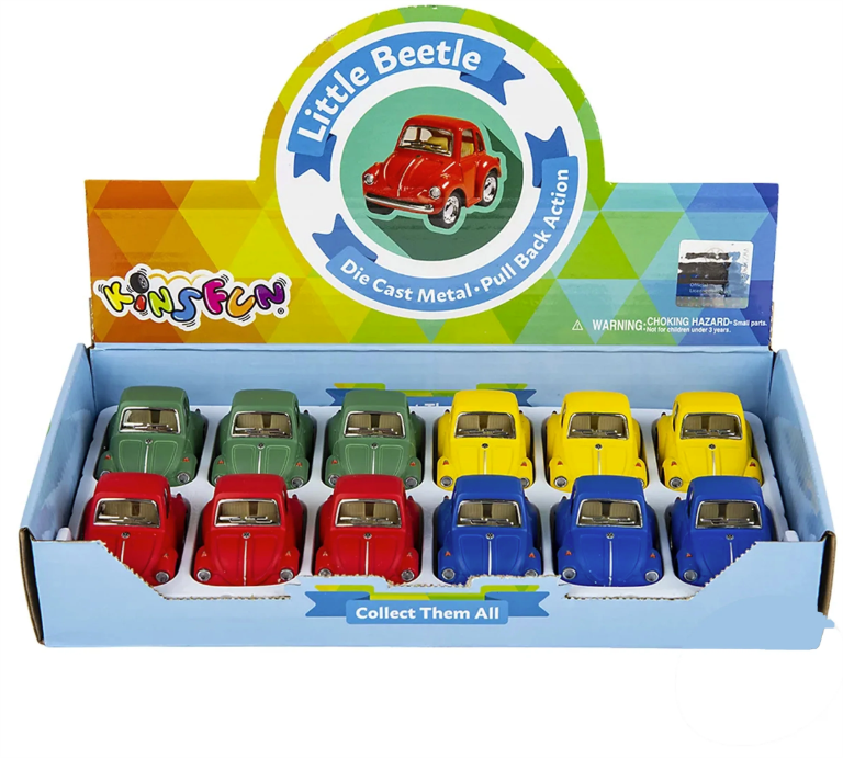 Get ready for endless fun with this Pullback VW Beetle Mini! This tiny, playful car races forward with a simple pullback, sparking joy for kids and collectors alike. Its compact size makes it perfect for on-the-go play, bringing classic VW Beetle charm wherever you zoom.