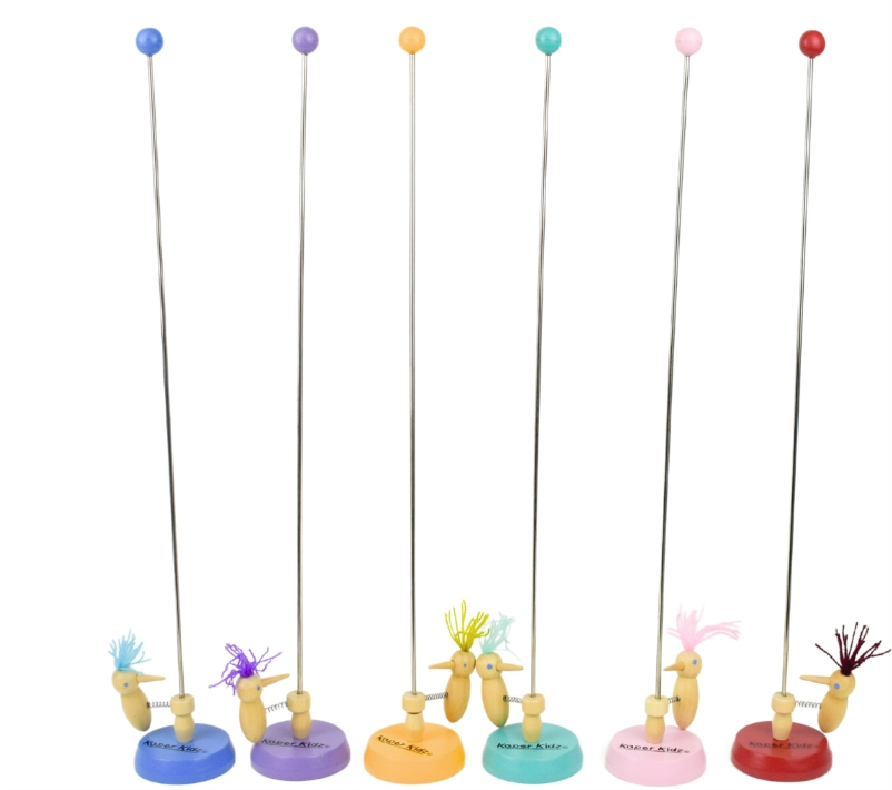 Introducing the Bobbing Beak Woodpecker from Kaper Kidz, a delightful desktop toy that brings whimsical entertainment to kids and adults alike. Move the woodpecker to the top of the metal rod, gently pull back, and watch it peck its way down, providing endless amusement as a fidget toy.
