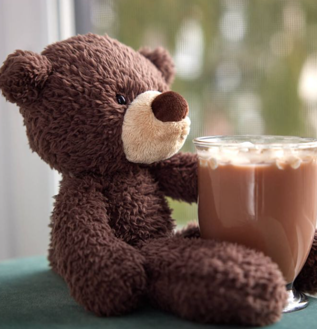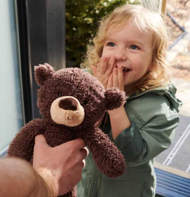 • Fuzzy teddy bear with floppy arms & legs and a cute sideways smile