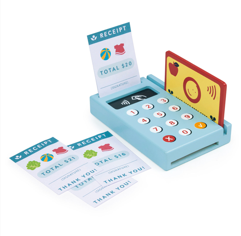 Introducing a fabulous wooden card machine that is perfect for pretend transactions.