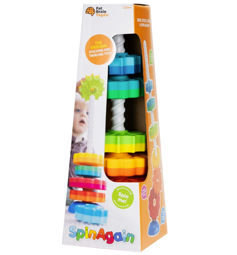 This visually stimulating toy will keep your little ones enthralled as they practice their hand-eye coordination and early engineering skills! There's stacking, there's twirling, and then there's SpinAgain!